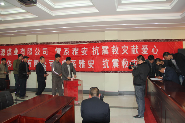 雅安廬山抗震救災(zāi)員工自主捐款場景