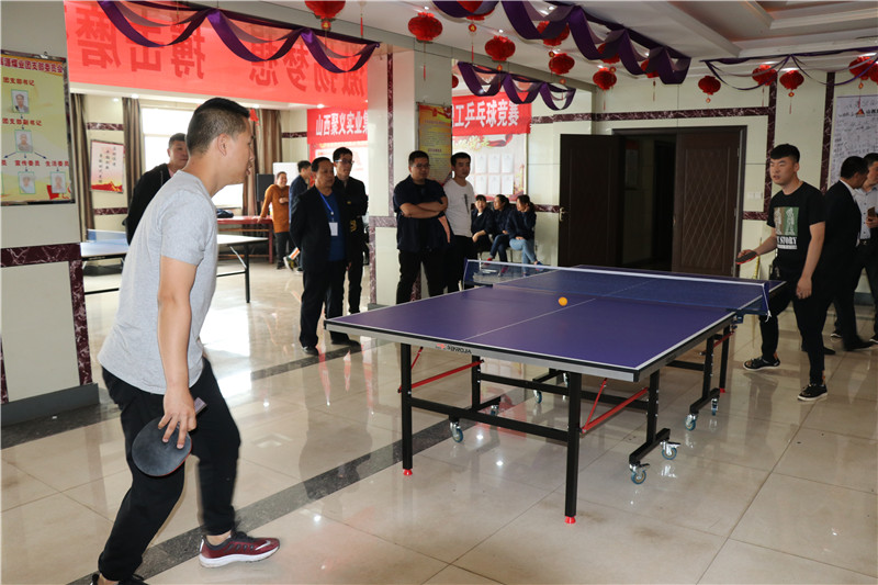 在乒乓球比賽中,分為女工組和男工組,抽簽決定對手,前面進(jìn)行單淘汰制,三局兩勝,然后實(shí)行循環(huán)淘汰制。比賽要求首發(fā)球必須拋起球,否則無效,以上合兩次判負(fù)分?;顒?dòng)現(xiàn)場氣氛緊張,扣人心弦,參賽隊(duì)員時(shí)而長球,時(shí)而短球,時(shí)而削球,時(shí)而扣球,將自己的最佳水平發(fā)揮得淋漓盡致,好球不斷,精彩紛呈。經(jīng)過幾輪激烈的角逐,馬志平、鄢建民、王建平分別獲得乒乓球比賽冠軍、亞軍和季軍。
