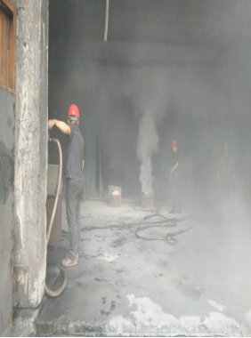 救護(hù)組清理檢查是否火災(zāi)現(xiàn)場(chǎng)有未撤離的工人,同時(shí)將清理情況向總指揮匯報(bào)